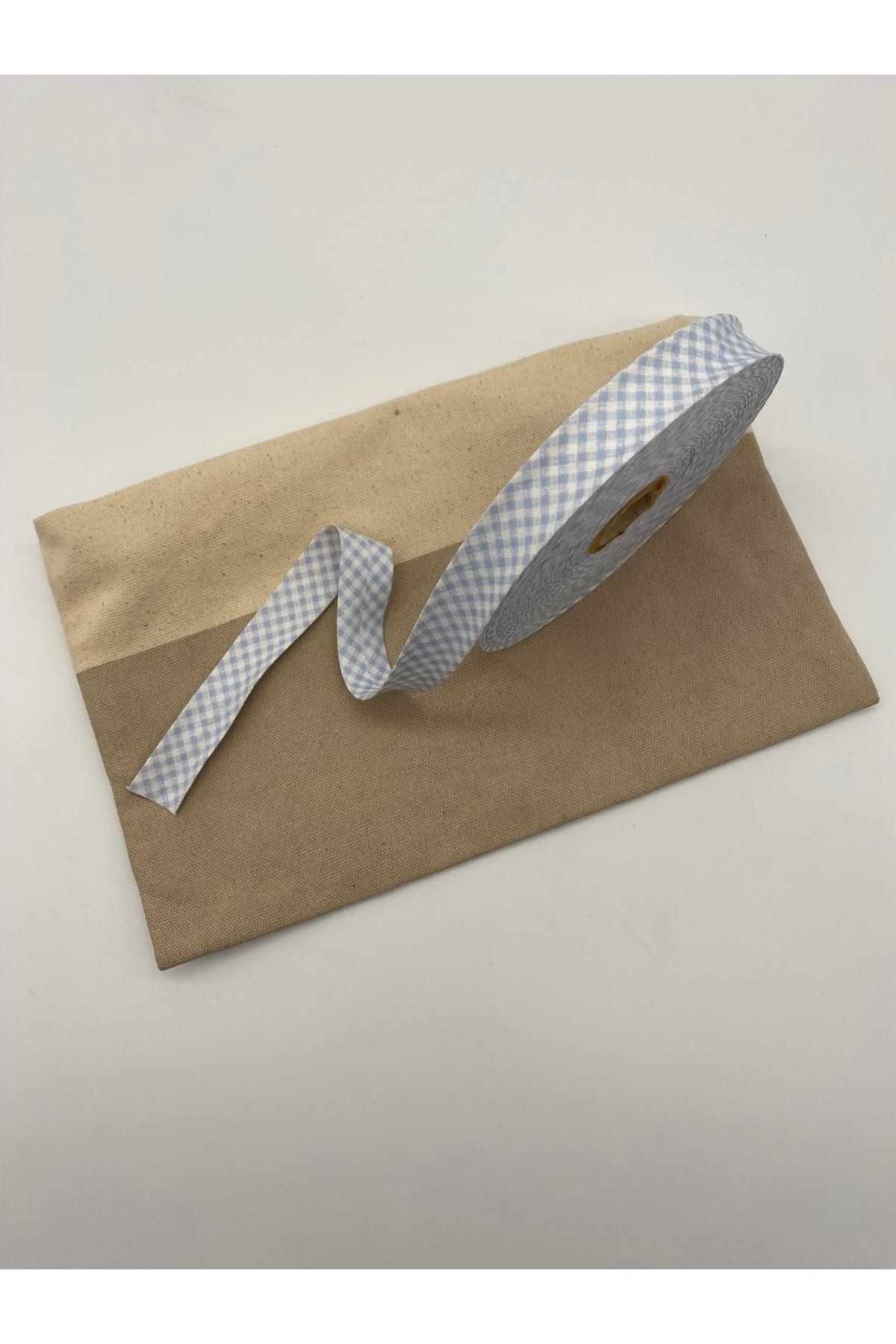 %100 Pamuk (Koton) Ekose Biye Mavi 25 Metre Uzunluk- 2 cm Genişlik - Verev Katlı Koton Biye 25 Metre