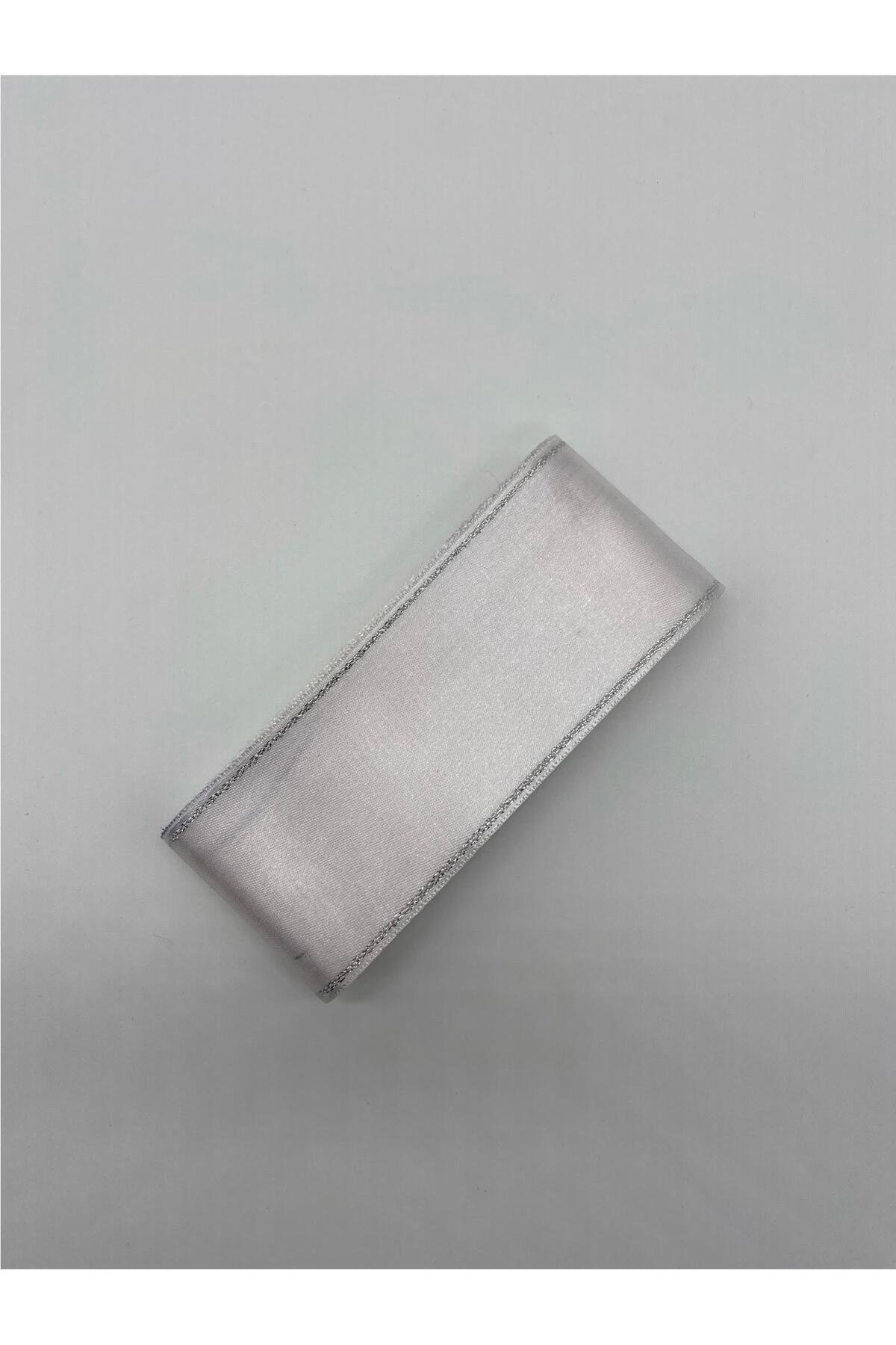 Beyaz-Gümüş Simli Saten Kurdele 6 cm 10 Metre Takı Kurdelesi,Geniş ,Bohça-Dekor Kurdela
