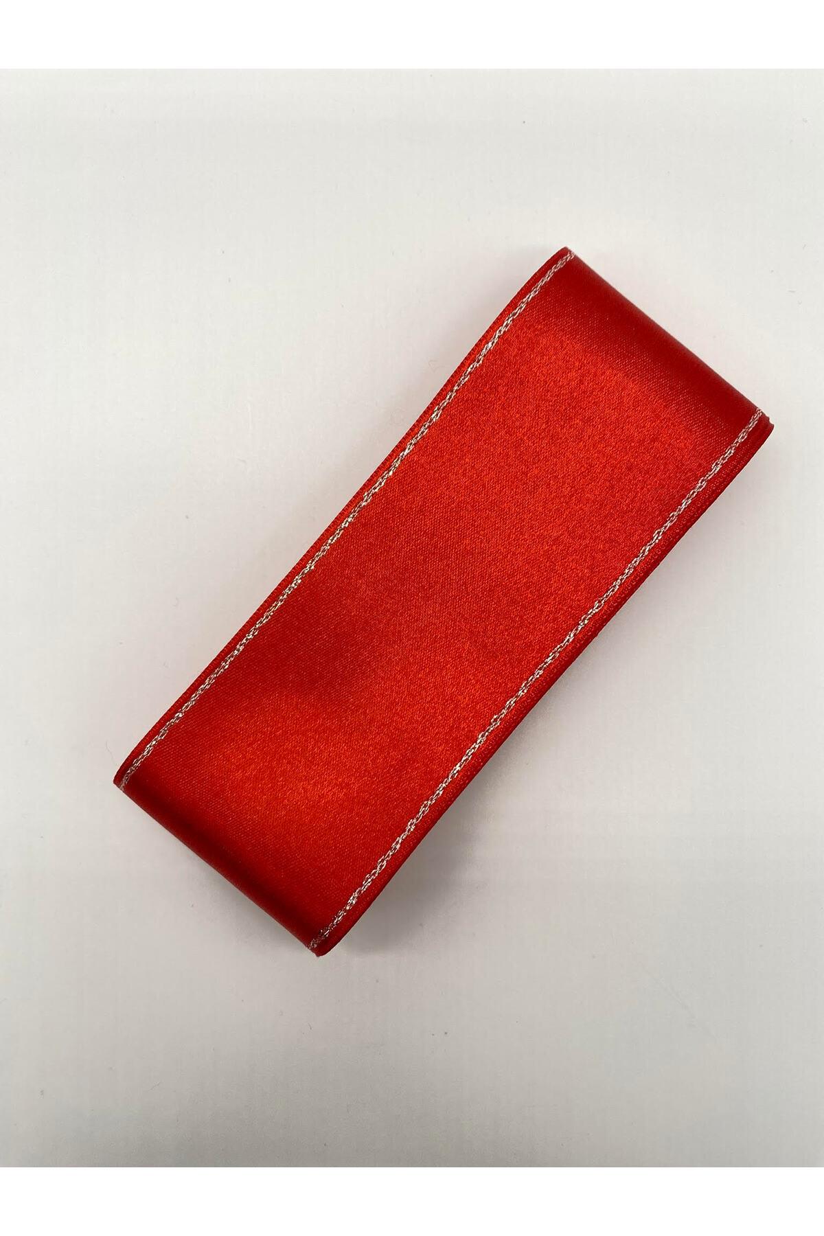 Kırmızı-Gümüş Simli Saten Kurdele 6 cm 10 Metre Takı Kurdelesi,Geniş ,Bohça-Dekor Kurdela