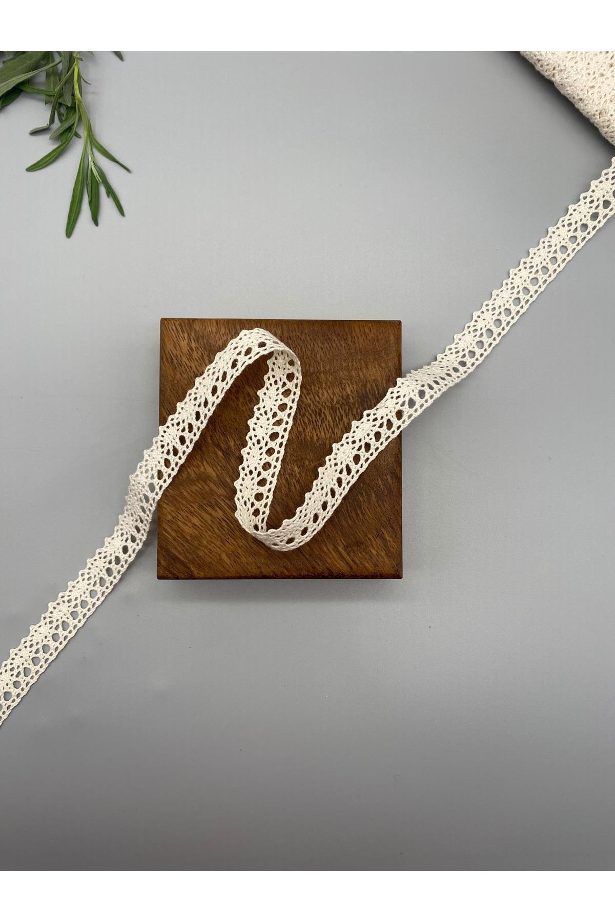 Krem, Ham Renk Pamuk Dantel-Kopanaki Şerit 5 Metre, 1.6 cm Genişlik No:1013
